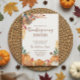 Delightful Thanksgiving invitation featuring a charming patchwork turkey with decorative patterns and autumn leaf accents. String lights add a festive touch while watercolor pumpkins and harvest foods create a cozy, inviting scene. Perfect for family-friendly Thanksgiving dinners with a playful, warm atmosphere. The whimsical turkey design brings joy and personality to your celebration.