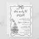 Apresentando o "Pronto para Pop" Engraçado, Engraçado e Whimsical Baby Bottle Champagne Torre Convite para Chá de fraldas - Uma moda e divertida convidada para celebrar a mãe! Apresentando um quadro rabugento com um charmoso arco de coquete, este design é acentuado com uma torre de champanhe desenhada à mão sendo derramada por uma garrafa de bebê no canto inferior. O fundo branco limpo permite que a combinação de scripts escritos à mão e fontes de blocos funk brilhe, criando uma vibração divertida, mas elegante. Perfeito para definir o tom de um chá de fraldas inesquecível com amigos e familiares. Personalize facilmente este modelo com os detalhes do seu evento. Também disponível como download digital instantâneo para compartilhamento fácil via e-mail, texto ou mídia social.