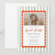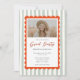 Sage stripes orange scallop grad party design with a modern script title and photo layout. Perfect for high school or college graduation celebrations. Stylish, fresh, and easy to personalize for a polished and memorable grad party event.