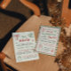 Set a festive tone with this whimsical Friendsmas invitation featuring a watercolor green striped background, playful lettering, and hand-drawn holiday illustrations. A cheerful red and green palette and modern doodle style make it the perfect choice for a cozy Christmas party with friends and Secret Santa fun.