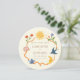 The round shape and watercolor illustration create a unique artistic feel, setting the tone for a joyful celebration.