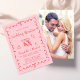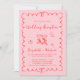 Trendy retro-inspired pink and red wedding reception invitation featuring a wavy frame adorned with coquette bows, whimsical hand drawn illustrations of a heart, stars and wine glasses, and "Wedding Reception" and the names of the bride and groom in a fun, playful script. Your photo fills the back of the invitation.