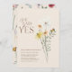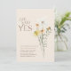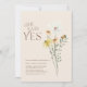 Enquanto Daisy Wildflower Ela Disse Sim Convite Noivado - Concebido para a noiva que ama a natureza, este cercado certeiro combina beleza de flor silvestre, flores margaridas e flores amarelas em um layout simples e minimalista. Com toques de verde, charme botânico, e borboletas flamejantes, é o perfeito design floral boho.