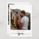 Duas fotos. Um belo sim. Este encantador convite para noivados celebra seu momento com um toque pessoal. Apresentando um guião manuscrito caprichoso e seu casal favorito de fotos, é a combinação perfeita de elegância moderna e simplicidade sincera. Quer planejando uma reunião confortável no quintal ou uma sociedade de chic, este convite digital dá o tom para o amor, o riso e o começo de sempre.