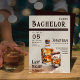 The invitation features a prominent word "Bachelor" in a large, bold font, making it the focal point of the design. A captivating watercolor-style illustration of a bottle of bourbon and a filled glass with ice takes center stage, evoking the rich amber hues and inviting aroma of fine whiskey. The vintage vibe is further enhanced with a burning cigar in mild white smoke. The event details, including the date, time , honoree's name and venue are presented in a clear and legible font, reminiscent of classic magazine layouts. The RSVP information is also clearly displayed.