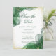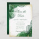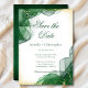 Announce your wedding date with this elegant White Background Emerald Green and Gold Save The Date card. This design features a crisp white backdrop accented with delicate alcohol ink marble textures in deep green and a shower of shimmering gold glitter. It offers a beautiful, airy feel while maintaining a touch of luxury. Ideal for brides planning a fresh, sophisticated spring or summer wedding.