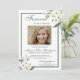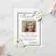 Este convite apresenta um elegante verde de flores brancas e uma armação com a foto do ente querido que partiu no centro. Apenas personalize o convite e substitua a foto do seu ente querido e informações sobre o funeral/serviço de memórias. Você pode personalizar o convite para qualquer maneira que você gostaria de lembrar e honrar a memória de seu ente querido. Por favor, note: "Para sempre em nossos corações", as flores brancas de aquarela verde com quadro e outros elementos gráficos e trabalho de arte não podem ser editadas, alteradas, excluídas ou movidas. Eles estão consertados.