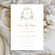 Floral White Hydrangea Crest Monograma Salvar o Convite de Casamento de Data. Convite De Casamento Tradicional. Flores White Hydrangea Greenery Casamento Monograma Crest Salvar o Cartão de Data