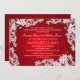 Design floral branco sobre um brilhante fundo vermelho personaliza o convite de casamento como preferido.
