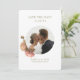 Modern and chic. This lovely wedding save the date card features a circular couple photo, floral boho blush rose accents and a contemporary set of fonts. Forms part of a full wedding suite with matching stationary in mix and match olive green, ivory. and white.