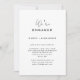 Apresentando o nosso White Modern Script Somos o Engaged Photo Noivado Invitation design, onde o minimalismo moderno encontra a arte de caligrafia. Esta estética curada traz um ar de sofisticação para o seu dia especial - com uma reviravolta de feitiço, charme casual. A combinação de uma simples tipografia com uma letra na moda adiciona uma personalidade única ao seu casamento. Este design clássico oferece um aspecto eterno e polido que é perfeito para primavera, verão, outono ou casamentos no inverno. Uma simples paleta subestimada de preto e branco cria o cenário neutro perfeito para sua celebração. Torne seu casamento muito elegante com nossa adorável coleção de Script Moderno. Tal como acontece com todos os nossos designs, se tiverem perguntas ou pedidos especiais, por favor, perguntem.