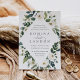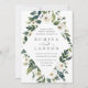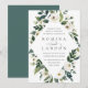 Nosso convite para o casamento de White Peony rodeia seus detalhes do dia do casamento com uma estrutura geométrica moderna de verde-coloração d'água pintada, folhagem botânica, rosa branca e flores de peônia.