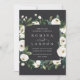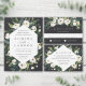 Nosso convite para o casamento de White Peony rodeia seus detalhes do dia do casamento com um quadro quadrado de cor d'água verde pintada, folhagem botânica, rosa branca e flores de peônia.
