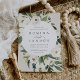 Nosso convite para o casamento de White Peony rodeia seus detalhes do dia do casamento com um quadro redondo de cor d'água verde pintada, folhagem botânica, rosa branca e flores de peônia, colocados no centro superior esquerdo para uma nova aparência moderna.