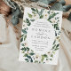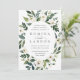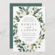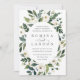 Nosso convite para o casamento de White Peony rodeia seus detalhes do dia do casamento com um gracioso quadro oval de cor d'água pintada verde, folhagem botânica, rosa branca e flores de pénia.