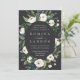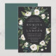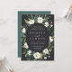 Nosso convite para o casamento de White Peony rodeia seus detalhes do dia do casamento com um gracioso quadro oval de cor d'água pintada verde, folhagem botânica, rosa branca e flores de pénia.