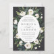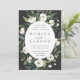 Nosso convite para o casamento de White Peony rodeia seus detalhes do dia do casamento com um gracioso quadro oval de cor d'água pintada verde, folhagem botânica, rosa branca e flores de pénia.