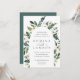 Nosso convite para o casamento de White Peony rodeia seus detalhes do dia do casamento com um belo arco de cor d'água pintada verde, folhagem botânica, rosa branca e flores de pénia.