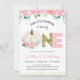 White Pumpkin Floral Dourado Convite para primeiro aniversario de Palavras Fácil outono, primeiro convite de aniversário da menina do templo da abóbora, com uma grande abóbora branca, letras douradas e cor-de-rosa, arranjo floral cor-de-rosa e alguns pontos dourados. O primeiro convite para o aniversário desta garota é uma forma doce de convidar convidados para uma festa de aniversário de outono ou outono de abóbora.