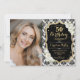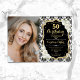 Elegante convite floral feminino para o 50º aniversário com sua foto. Design branco preto de vidro com ouro brilhante. Apresenta cor damasco preta e branca, rosas, fonte de script e confetti. Perfeito para uma festa de comemoração de na moda adulto. Personalize com seus próprios detalhes. Pode ser personalizado para qualquer idade! Impressos convites Zazzle ou modelo de impressão digital instantânea para download.