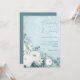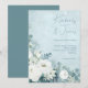 White Roses Hellebores Silver Eucalyptus floral wedding invitation featuring elegant calligraphy script modern watercolor flowers frosty pale blue background and snowflake details