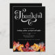 A Colorida Colorida Watercolor do Script Branco, agradecida, deixa o Black Invitation. Convide um janto de Ação de Graças com os próximos e mostre gratidão. Este convite é decorado com uma bela letra branca, com a inscrição Thtering Thankful, e as coloridas folhas de aquarela do outono em tons de amarelo, laranja e vermelho. O texto personalizável está em branco no fundo preto. Essa escolha corajosa torna o texto e as folhas vibrantes pop. Este produto vem em diferentes combinações de cores. Escolha seu favorito.
