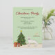 A ilustração original do desenho animado de Destei de um lindo cão branco suíço Shepherd / German shepherd branco. O cachorro está parado por uma árvore festiva de Natal decorada com ornamentos vermelhos e amarelos, uma pérola branca e uma estrela amarela que é colocada no topo da árvore. Há também dois presentes envoltos pela árvore e atrás do cachorro há uma prateleira marrom com duas velas. A cor do chão é bege e a cor de fundo é verde-claro. Personalize as áreas de texto de exemplo com os detalhes do seu evento.
