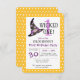 Este convite, com um chapéu de bruxa roxo e preto, é perfeito para o Primeiro Aniversário do Halloween. Cada ponto é perfeitamente personalizável para dizer exatamente o que você quer!
