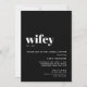 Um chá de panela tipográfico moderno, preto e branco, com "wifey" como título principal.