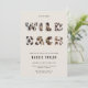 Um modelo de convite para festas de solteira moderno, elegante e chic com um tema "Vamos ficar selvagem", com tipografia moderna e letras de bloqueio cobertas de pele-leopardo (este é um efeito digital). Uma escolha encantadora para uma festa de solteira em um bar, clube, restaurante ou qualquer lugar onde as garotas possam ficar selvagens.
