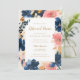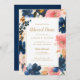 As flores frescas, elegantes, de cor d'água, em azul vibrante marinho e cor-de-rosa pincelado doce, são acentuadas com dourados antigos macios. Estes convites de janto de ensaio foram concebidos para corresponder à nossa Marinho de Elegância Selvagem, Blush e Dourada coleção de convites para casamento.