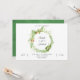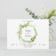 Cartões de casamento verdes e brancos, com samambaias, flores silvestres e morangos e um fundo de lavagem a aquarela verde.