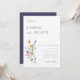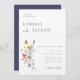 Wild Meadow Floral, Convite De Casamento. Buquê de flor silvestre colorido de cor aquosa com revestimento de cor azul marinho.