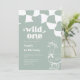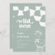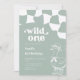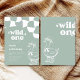 Celebrate your little 'Wild One' with this charming first birthday invitation featuring a dapper duck in a hat and boots! Set against a trendy sage green background with a playful white checkerboard pattern, this invite is perfect for a rustic, farm, or woodland-themed celebration. Personalize with your child's name, party date, time, and location for a unique keepsake. Ideal for boys or girls, this versatile design sets the tone for a memorable milestone birthday! Printed on high-quality cardstock, ready to delight your guests