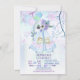 Wild One First convite de aniversário apresenta um Tepe azul de aquarela com pena tribal e sotaques florais. buquê de balão pastel bonito e pequenas bolinhas cor-de-rosa sobre fundo azul macio e folha lilar. As informações de terceiros estão prontas para você personalizar.