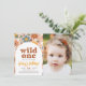 Celebre o dia especial do seu pequenino com o convite de aniversário da garota de flor silvestre encantadora. A frente do cartão mostra um padrão desenhado à mão de flores silvestres brancas, em uma paleta colorida de castanhos, beges, pinks, amarelos, verdes e azuis da década de 70. Os detalhes do evento são escritos em dentro, uma simples estrutura de arco, com "selvagem" em tipografia de groovy, o nome da aniversariante em letras amarelas de mostarda e os detalhes da festa em simples tipografia. No lado direito do cartão, há uma foto personalizada de sua escolha. As cartas se invertem ao mesmo padrão floral que a frente. Esta reviravolta moderna sobre um tema retrô é perfeita para qualquer celebração de primavera ou verão. Uma design boêmica de festa de aniversário com flores margaridas, perfeita para um tema de "arremesso". Procure na nossa coleção mais convites de festas de aniversários de flores silvestres. Entre em contato conosco com quaisquer consultas ou solicitações de personalização - observe que não podemos modificar uma ordem existente, portanto, certifique-se de nos enviar uma mensagem primeiro!