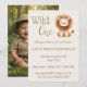 Wild One Watercolor Safari Lion First Birthday Invitation featuring a sweet hand-painted lion and soft sage green accents. Perfect for a safari first birthday, this design is a charming choice for a jungle, lion, or Wild One themed celebration.