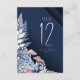 Adicione um toque de elegância divertida à sua decoração de casamento com esta placa de número de tabela coordenada, projetada para combinar com a sua suíte de papelaria botânica caprichosa. Apresentando um canto de samambaias delicadas, cogumelos e florais em branco, azul macio e pêssego contra um fundo de marinho profundo, este cartão traz cores ousadas e charme inspirado na natureza para seu quarto, ou lugar. Um na moda e um detalhe funcional que gravatas seu tema de forma magnífica. Procure ID1110 para ver todos os produtos de coordenação nesta coleção. Nota: o design pode conter conteúdo gerador.