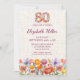 Celebrate her 80th in style with this wildflower invitation featuring a large floral filled “80”, a soft linen-look background and watercolor garden flowers along the bottom. Personalize the name, party details and RSVP to create a beautiful keepsake for an elegant milestone birthday celebration. Enjoy!