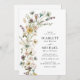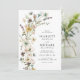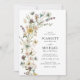Convite para Casamento de Bóho de Flor Selvagem. Este elegante convite de casamento de flor silvestre branca apresenta uma bela cor d'água pintada à mão, cor rosa pincelada, azul empoeirado, e flores verdes de sábio prensadas com texto preto sobre fundo branco. As costas incluem um buquê adorável. Encontre itens correspondentes na Coleção de Casamentos de Flores Selvagens.