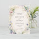 Flores silvestres deliciosas e verde-luxuoso, pintados em aquarelas moles com tons de roxo, lavanda, rosa e verde, entrelaçados graciosamente contra um fundo de náudia para criar um quadro floral elegante para este convite de casamento. A design é uma mistura eterno de sofisticação clássica e o charme lúdico de flores silvestres, perfeito para o romântico moderno. Ideal para primavera ou verão, ou mesmo outono ou casamento no inverno, este convite combina tanto com a elegante noiva boêmica quanto com aqueles que planejam uma festa de jardim, celebração de quintal ou um evento formal nos jardins de um château. Uma bela escolha para as noivas que procuram um toque do capricho da natureza com elegância refinada.