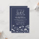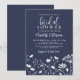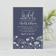 Simple Wildflower Boho Bridal Shower Invitation. Perfect for spring through autumn celebrations, this minimalist design features a rich navy blue background on both the front and back for a bold, elegant, and timeless look. A simple white outline wildflower art border sits along the bottom, creating a clean, high-contrast palette that feels modern, refined, and subtly charming.