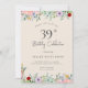 Convites de Aniversário para Adultos | Rustic Beige floral Elegant 39th Invances Este clássico e vintage design apresenta um tema simples boêmico floral de flor silvestre e a tipografia Script em fundo bege. Personalize o convite com seus detalhes e se quiser reorganizar o estilo e posicionamento do texto, pressione o botão "Clique para personalizar mais". Para mais produtos do mesmo tema, visite o meu compro: Youtopia Oficial.