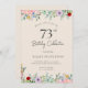 Convites de Aniversário para Adultos | Rustic Beige floral Elegant 73rd Invitation Este clássico e design de vintagem apresenta um tema simples boêmico floral de flor silvestre silvestre e tipografia Script em fundo bege. Personalize o convite com seus detalhes e se quiser reorganizar o estilo e posicionamento do texto, pressione o botão "Clique para personalizar mais". Para mais produtos do mesmo tema, visite o meu compro: Youtopia Oficial.