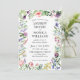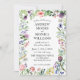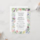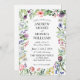 O convite para casamento branco de flores silvestres elegantes com uma mistura de um roteiro e fonte formal. A design apresenta flores bonito, folhas verdes e borboletas. Personalize a parte traseira com as iniciais do casal ou deixe-a vazio. Ideal para um primavera floral ou verde ou casamento de verão.