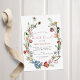 Um delicioso convite para bronze floral, com um sapato de cavalo aquarela de flores silvestres coloridas. "brunch bridal" está na fonte do estilo caligráfico moderno vermelho-escuro.