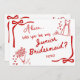 Personalized Bridesmaid Proposal Cards. Invite your cherished friends and family to stand by your side on your special day with our Personalized Bridesmaid Proposal Cards. These hand-drawn, red-colored cards are designed with a unique touch, perfect for adding a personal flair to your proposals. Whether you're asking your beloved friends to be your Bridesmaid, Maid of Honour, Best Man, or even your adorable little Flower Girl and Ring Bearer, our collection offers a heartfelt way to pop the question. Each card provides the opportunity to craft a message that truly resonates, ensuring your loved ones feel honored and excited to be part of your wedding journey. Make your proposal one to remember with these beautifully crafted keepsakes. This collection is in Bright Red Color.