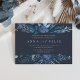 Nosso convite de casamento do Winter Azure em um formato paisagem enquadra seus detalhes de casamento com uma borda superior e inferior de folhagem de aquarela em tons gelados de marinho e azul-céu. Uma escolha moderna, mas orgânica, para casamentos no inverno com botânicos de cor d'água pintados de forma intricada.