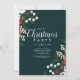Celebre a estação com este elegante convite de festas de Natal com um belo design floral de inverno. Adorado com bagas sagradas e delicadas flores brancas, este convite é perfeito para uma festa festiva. O fundo verde escuro destaca os florais alegres, dando a ele um olhar moderno, mas clássico. Personalize os detalhes do seu próximo evento e defina o tom para uma feliz e uma celebração brilhante.