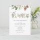 Convite para o bebê borrifado com "oh baby" em letras de ouro elegantes com uma fronteira de evergreen e pinecones. Perfeito para um bebê de inverno. Personalize com suas informações.